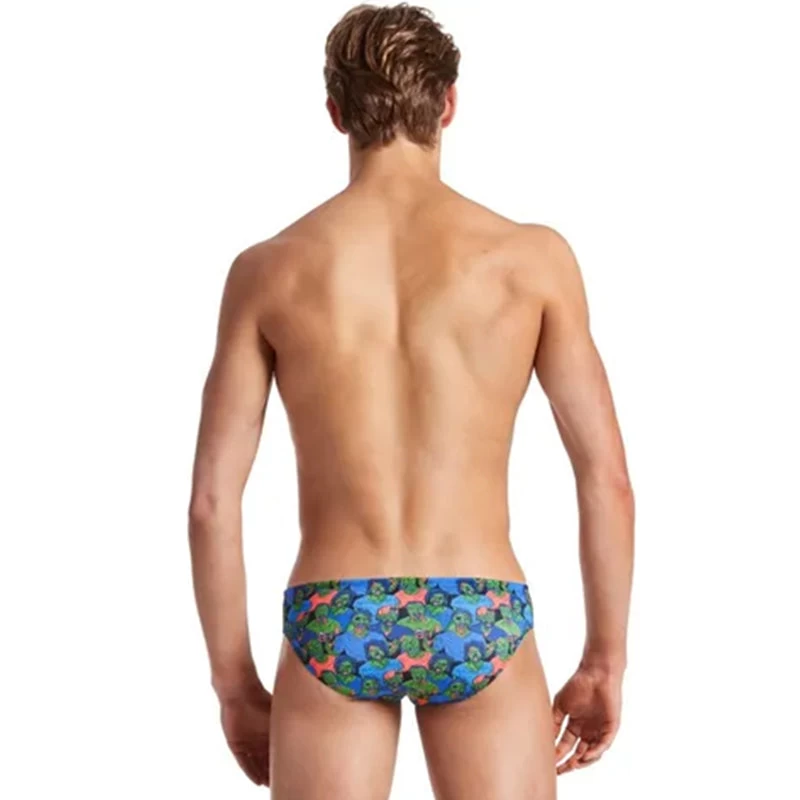 Are you ready for the zombie apocalypse? Show ‘em which side you are on in The Undead Briefs. Featuring an army of neon green zombies on the hunt for their next meal, these jammers are scary cool.