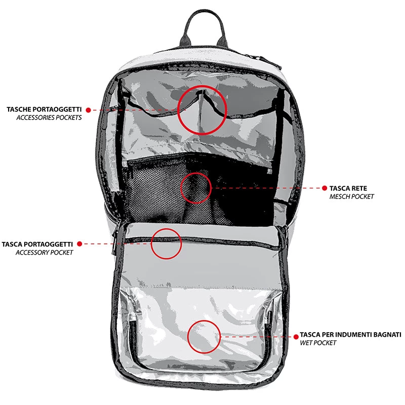 Numerous interior pockets for personal belongings and wet pocket for keeping wet swimsuits and accessories separate from other items.