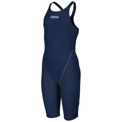 Our girls’ Powerskin ST 2.0 open-back one-piece is a technical swimsuit designed for both racing and training. With a new knit fabric combination and extra durable lining, ST 2.0’s hydrodynamic surface and strategic compression boost speed in the water and muscle support where it’s needed. This racing style has an innovative seam pattern that keeps the body lifted plus all seams are flatlock for a snug and comfortable fit. As your young swimmer races, her upper-body will feel free and supported with a new reinforced centre strap. Our FINA-approved competition swimsuit is printed with our logo and has athletic styling.
