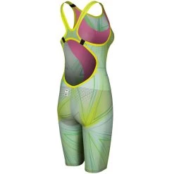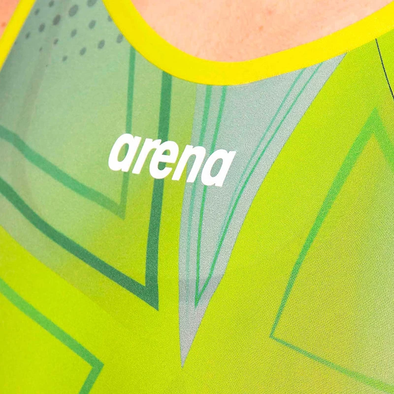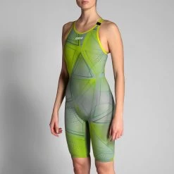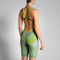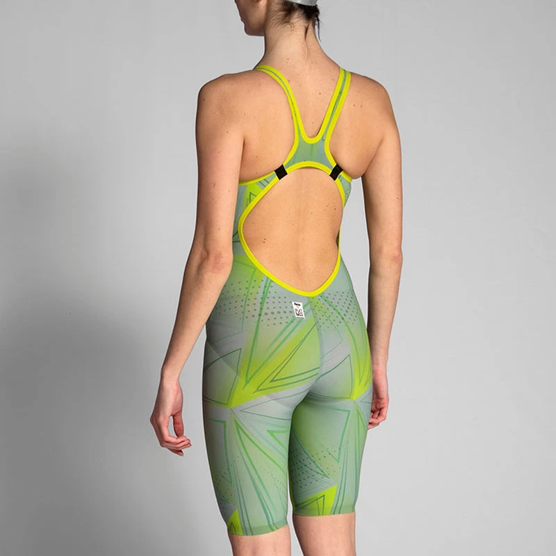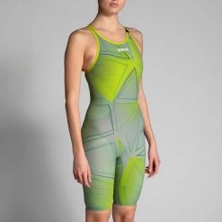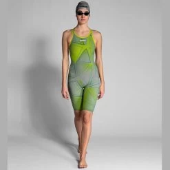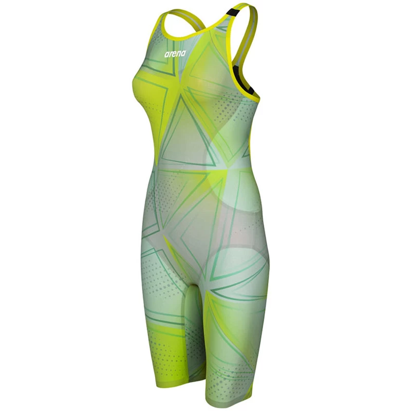 The arena Womens R-Evo One Kneesuit Limited Edition with an exclusive design is created with an innovative construction consisting of using a single piece of fabric, with proven results and top performance. Made from only one piece of fabric with a single bonded seam at the back, the arena Womens R-Evo One Kneesuit feels like a second skin, giving the swimmers the feeling that they’re at one with the water. The absence of side seams increases freedom of movement, guarantees exceptional durability, and heralds a new era in swimsuit design. The ultra-lightweight material is so comfortable it feel like a second skin, while its fines yarn and tighter weave reduces water absorption and hence drag in the water, producing an advanced hydrodynamic effect.