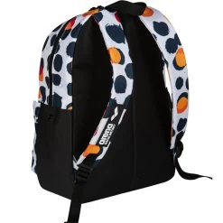 The Arena Polka Dot Backpack 30 is a great all round sports backpack. It is perfect for carrying wet swim gear and the ventilation of all compartments allows for moisture control. The front zip pocket keeps small items close and the padded back panel adds comfort when on the go. There is also an inner laptop sleeve and a wide and roomy side pocket. The reinforced bottom will protect the contents from wet floors.