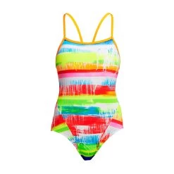 With full back coverage and a racer strap finish, this simple style is easy to put on and take off. Features a low leg, single strap bind with Funkita embroidered logo and full front lining. Available in sizes 1 – 7.
