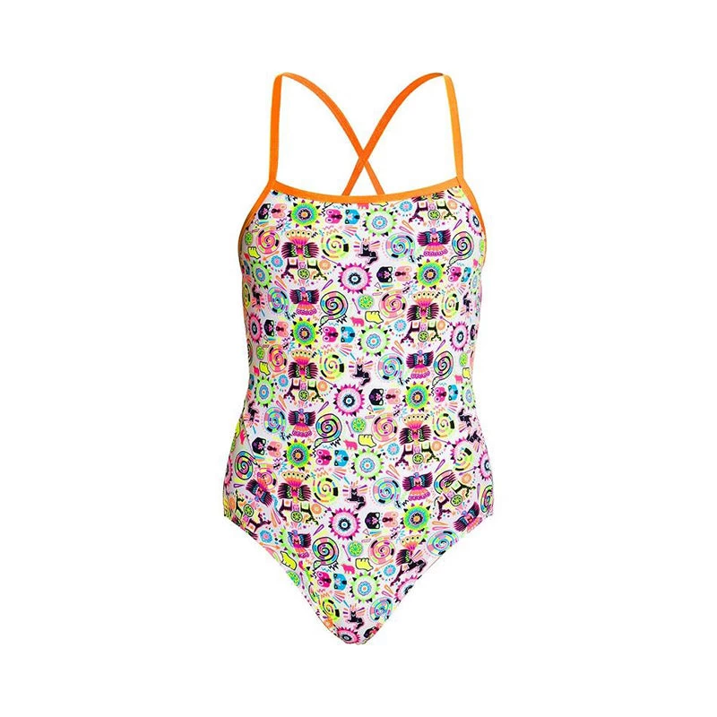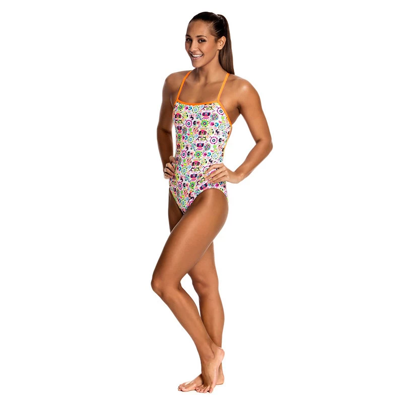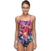 Featuring an open key hole, cross over single straps, a moderate leg height and full front lining to provide great support and comfort so you can swim fast and freely for hours. Available is sizes 8 – 16.