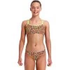 A firm fitting crop top and hipster brief suited to the sporty girl, with underbust and waist elastic and drawcord in the brief. Features single bind shoulder straps.