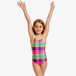 I’m the most popular Funkita one piece for little swimmers offering a full back and low leg for complete coverage.