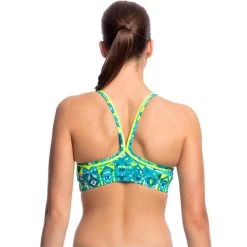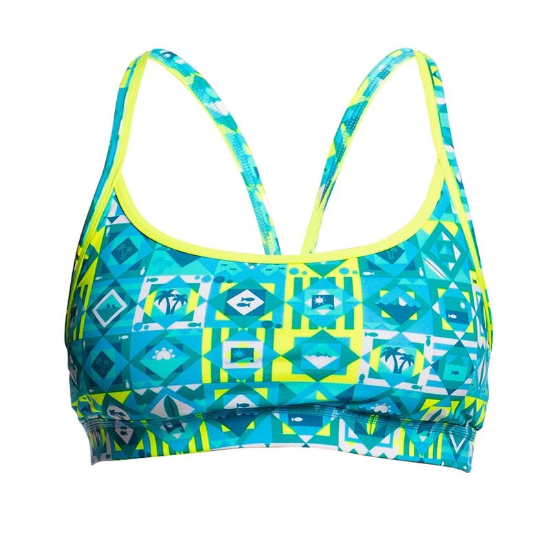 Firm fitting sports crop top with racer back and double strap bind finish with wide elastic for under bust support to give you the support you need in a sports top. Sold as separates.