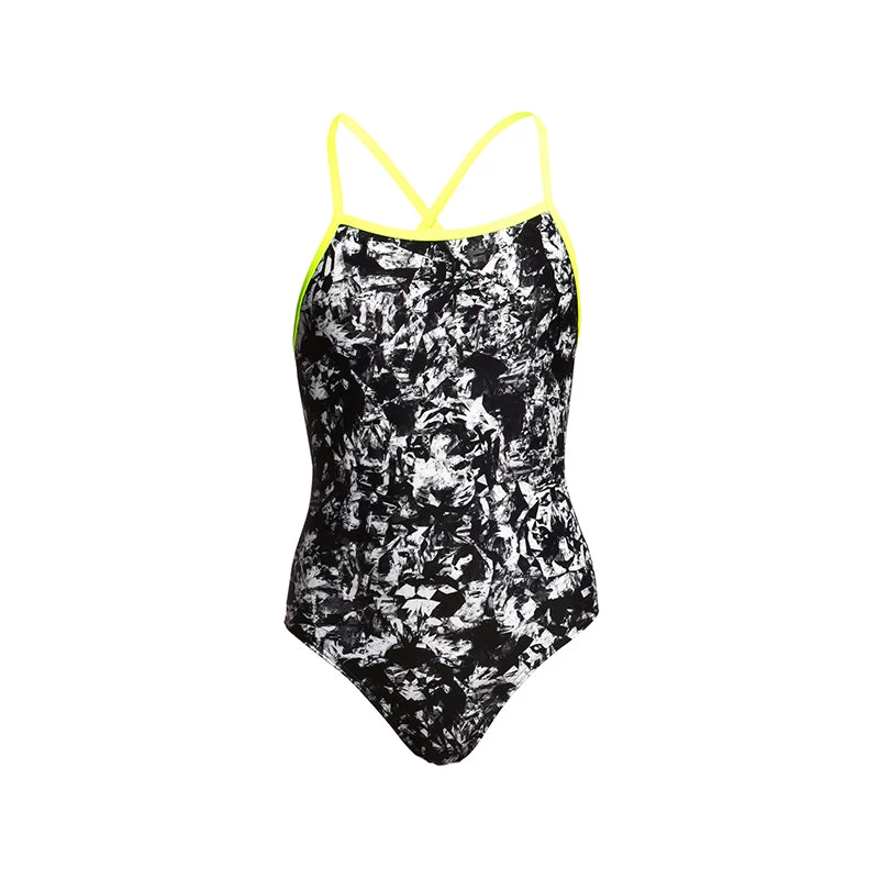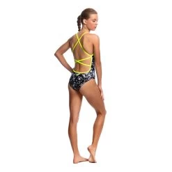 You’ll be sure to get noticed on pool deck in our strappiest one piece yet! Single strap binds that criss cross down your back with a moderately high cut leg.