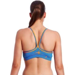 Firm fitting sports crop top with racer back and double strap bind finish with wide elastic for under bust support to give you the support you need in a sports top. Sold as separates and available in sizes 8 – 14.