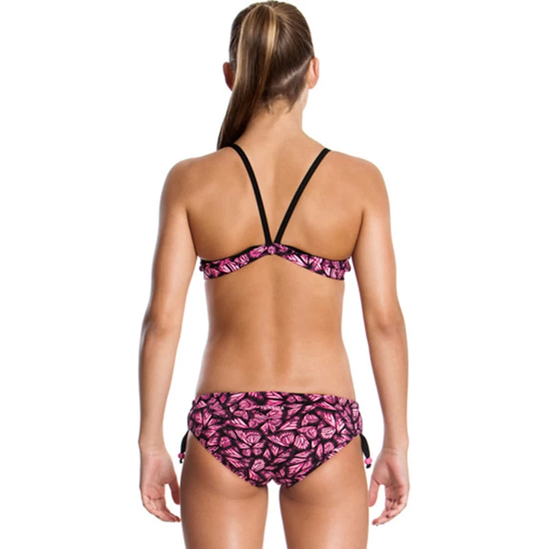 A firm fitting triangular top with gather detail and beaded ties and a hipster brief with side gathering for a fresh beach bikini look. Front lined and with a drawcord brief, it is perfect for catching waves and jumping in the pool.