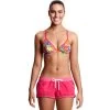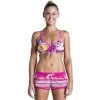Loose fitting cropped pull-on beach short with shirred waist, side pockets and draw cord to fasten.