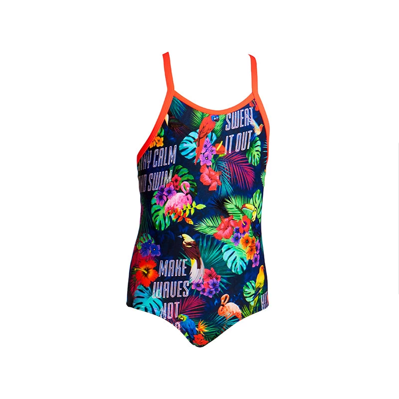With full back coverage and a racer strap finish, this simple style is easy to put on and take off. Features a low leg, single strap bind with Funkita embroidered logo and full front lining.