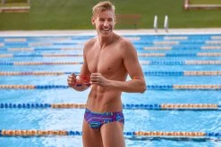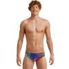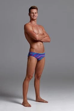 A classic cut brief with 8cm sides, flat elastic waistband and flatlock stitch finish. Drawcord, front lining and Funky Trunks embroidery come standard.