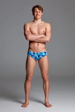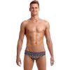 A classic cut brief with 8cm sides and flat elastic waistband and flatlock stitch finish. Drawcord, front lining and Funky Trunks embroidery come standard.