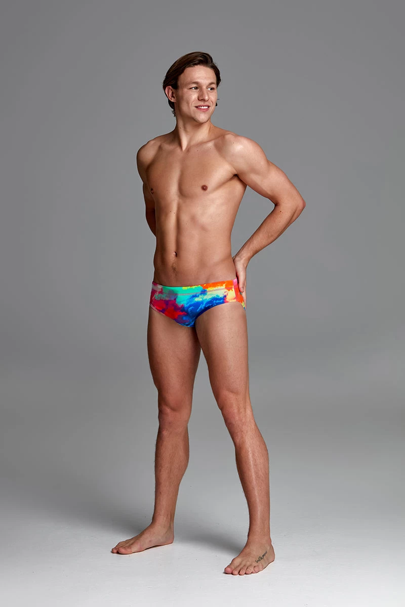 A classic cut brief with 8cm sides and flat elastic waistband and flatlock stitch finish. Drawcord, front lining and Funky Trunks embroidery come standard.