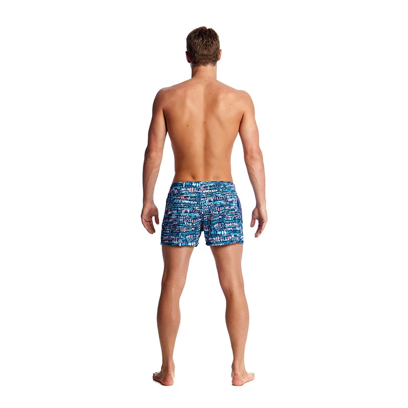 Short and stylish fitted watershort made of quick drying polyester. Features a built in brief for added support, deep side pockets, coin pocket and drawcord to fasten. Now with Funky Trunks branded brass hardware including metal tips, eyelets and rivets. Funky Trunks patch on leg. 90% Polyester 10% Elastane.