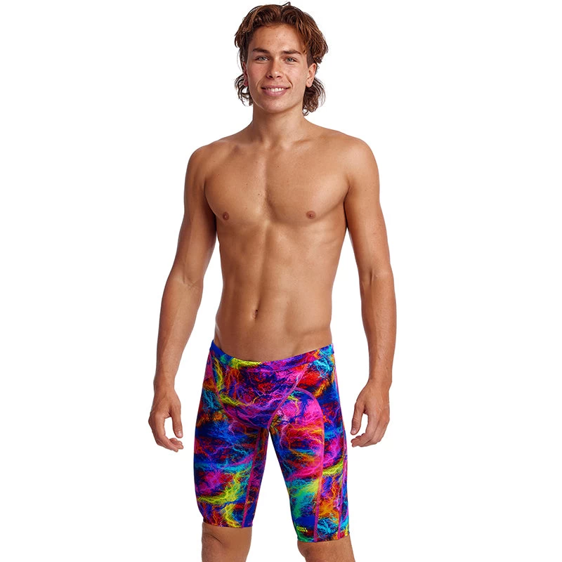 Our R&D team has finalised important research into the creation of nuclear fusion when you wear our latest swimwear. As soon as you dive into water, the fabric absorbs and separates the hydrogen molecules before performing the crucial job of splitting the hydrogen atom within proximity of very highly sensitive regions of your body. The resulting energy is stored within the swimwear, ready to be tapped into by cities and countries as soon as you are plugged into the grid. This print is a big scale so when it’s placed on your product it could look quite different from the photo you see, but it will still look amazing.