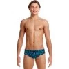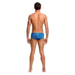 A classic cut brief with 8cm sides and flat elastic waistband and flatlock stitch finish. Drawcord, front lining and Funky Trunks embroidery come standard.