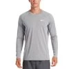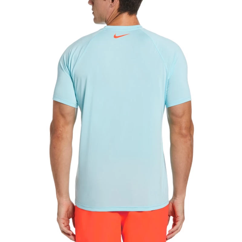Great for wearing to and from the beach, this Nike men’s water shirt has Dri-Fit technology to help keep you comfortable and dry. The short sleeve hydroguard is made from a soft and breathable jersey knit fabric that’s comfortable to wear both indoors and out under clear blue skies. The swim tee shirt has a hint of stretch for a flexible fit, while internal taping at the neck helps to minimize distracting chafing. Contrast-colored bolts of electricity surround the iconic Swoosh printed on the chest, bringing a energetic twist to the design. Made from at least 75% recycled materials, it’s an eco-friendly choice. (NESSC671)