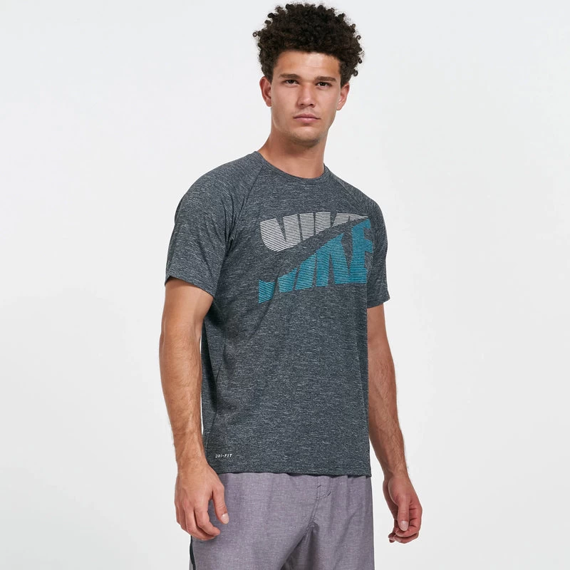 Men’s Nike Swim Heather Tilt Short Sleeve Hydroguard has UPF 40+ protection to help you stay one step ahead of the sun’s rays. It features Dri-FIT technology and a good amount of stretch to keep you comfortable both in and out of the water. A dynamic combination of the Nike text and swoosh logos across the chest completes the swim shirt’s sleek modern design. (NESSA595-001)