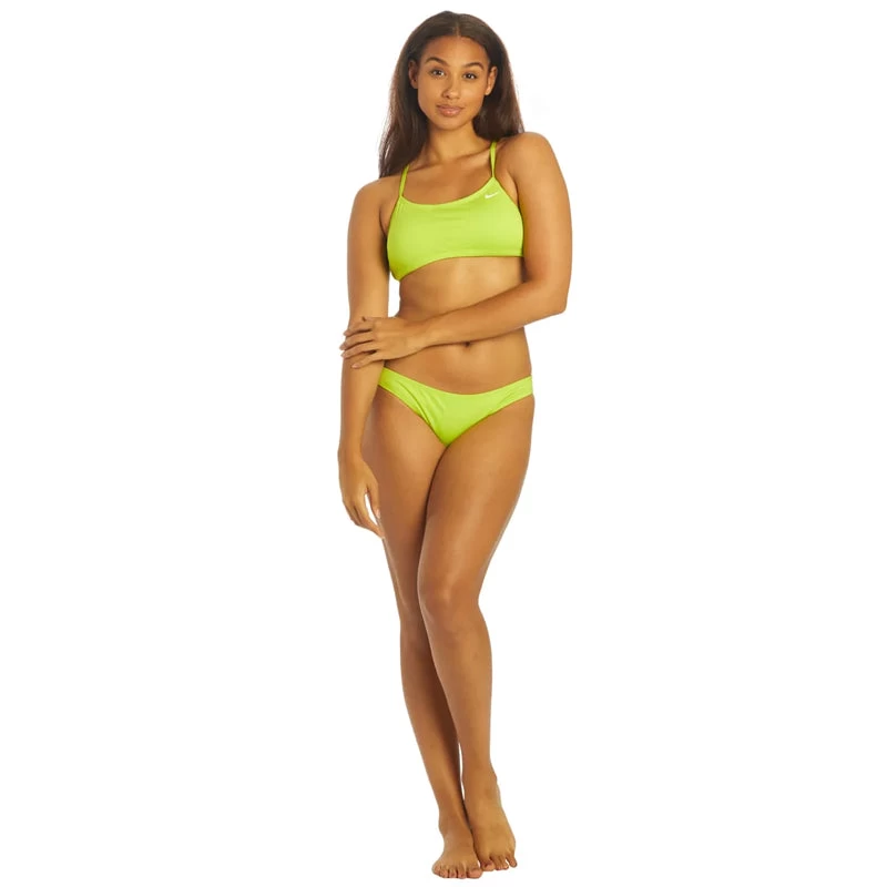 Women’s Essential Racerback Bikini Top has sporty style and a great fit. Offering light support, the swim top is ideal for lower impact activities. The racerback straps provide excellent freedom of motion and can be adjusted to customize the fit. The soft cups provide additional coverage and can be removed from the stabilizer pockets. Fully lined, you can swim with confidence or relax poolside in this bikini top. (NESSA226)