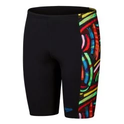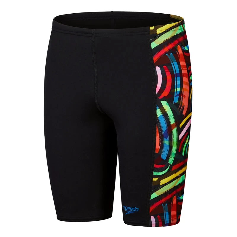 Splash, dive and train in this sleek black Jammer, featuring eye-catching side panels of our brightly coloured ‘brushstrokes’ print.