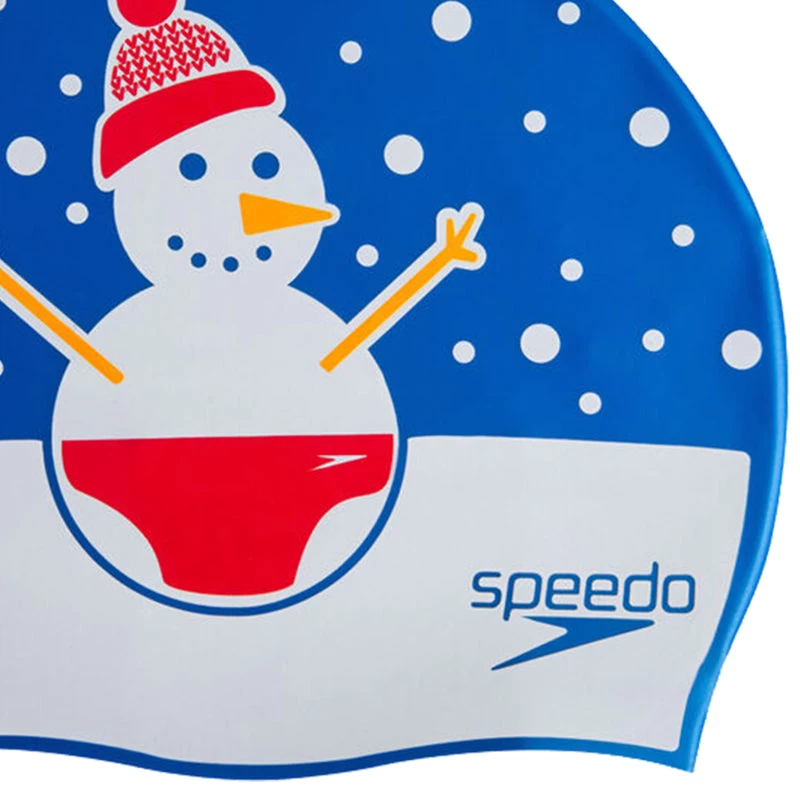 A festive unisex Christmas cap to add a little fun to your holiday season swims. Featuring a snowman design, this swim cap is made with a durable silicone construction and will help protect hair against chlorine.