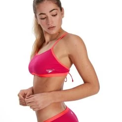 With its vibrant magenta colour and contrasting phoenix red straps, our stylish Tie-back Cropped Top brings a burst of colour to the pool. Fully front lined for comfort and modesty, it includes fully adjustable straps for a secure fit during hard sessions. Designed to be durable and better for the environment, it’s made from our new ECO Endurance+ fabric, which is 100% chlorine resistant, quick-drying and made using 50% recycled materials. (812352H162)